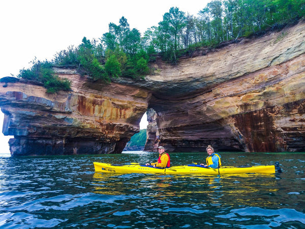 Kayaking the shoreline along Pictured Rocks National Lakeshore is an experience that you will not want to miss. This is arguably the most beautiful shoreline in the United States, with crystal clear water in the largest freshwater lake in the world. Sandstone cliffs of beautiful reddish and orange hues rise vertically out of the shoreline nearly 200 ft. Ride the swells as you can hear the waves crashing into these rocks which carved beautiful caves, arches, and other natural formations that early explorers used for landmarks over 200 years ago. Paddle the same water as the Voyageurs, trappers, geologists, and Native Americans did as a resident population slowly came to the Upper Peninsula during the fur trading and exploration eras.